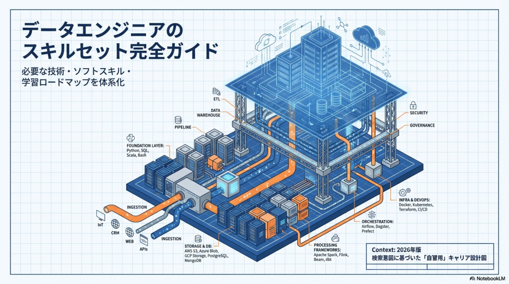 データエンジニアのスキルセット完全ガイド|必要な技術・ソフトスキル・勉強法を解説